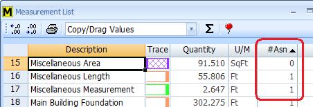 Another audit feature Dan thinks might be useful is the Assignment Count column in the Measurement List. If you sort by this column, unassigned measurements are at the top of the list (with a zero count) and multiply assigned measurements are at the bottom. This makes it easy to spot assignment errors.